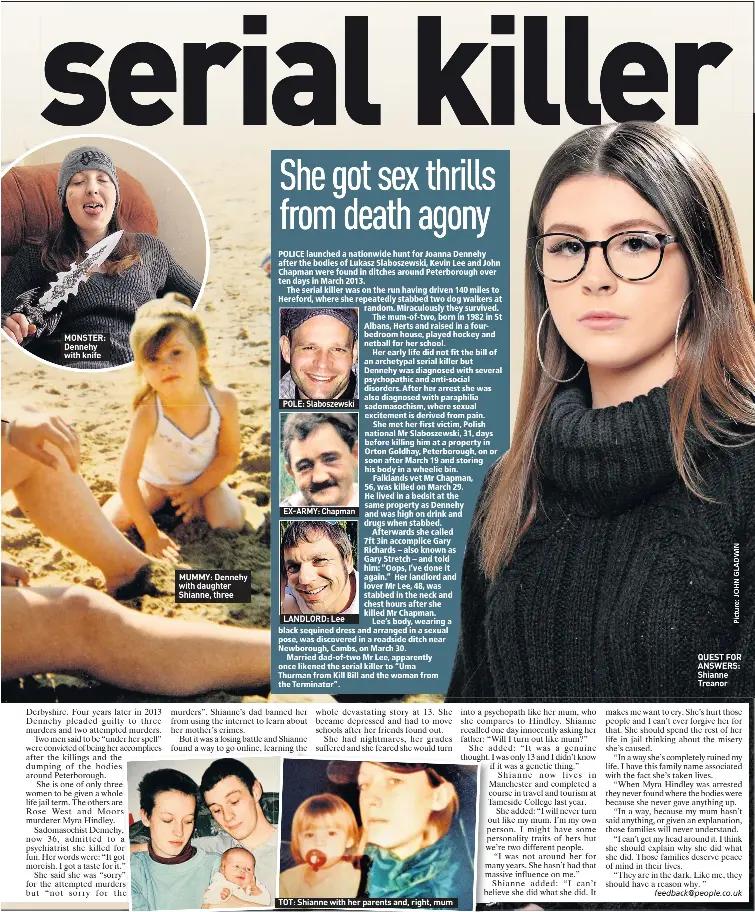 'i am shianne treanor said she will never forgive her mum for her disgusting acts (image: Joanna dennehy has got the notoriety that she was after, being up there with rose west and moira hindley. Shianne treanor, que ahora tiene 21 años, aparece en el documental de sky, the murderer and me. La hija de la asesina en serie consideró quitarse la vida por temor a convertirse en el monstruo que fue madre. Joanna dennehy 'just wanted blood', court told.